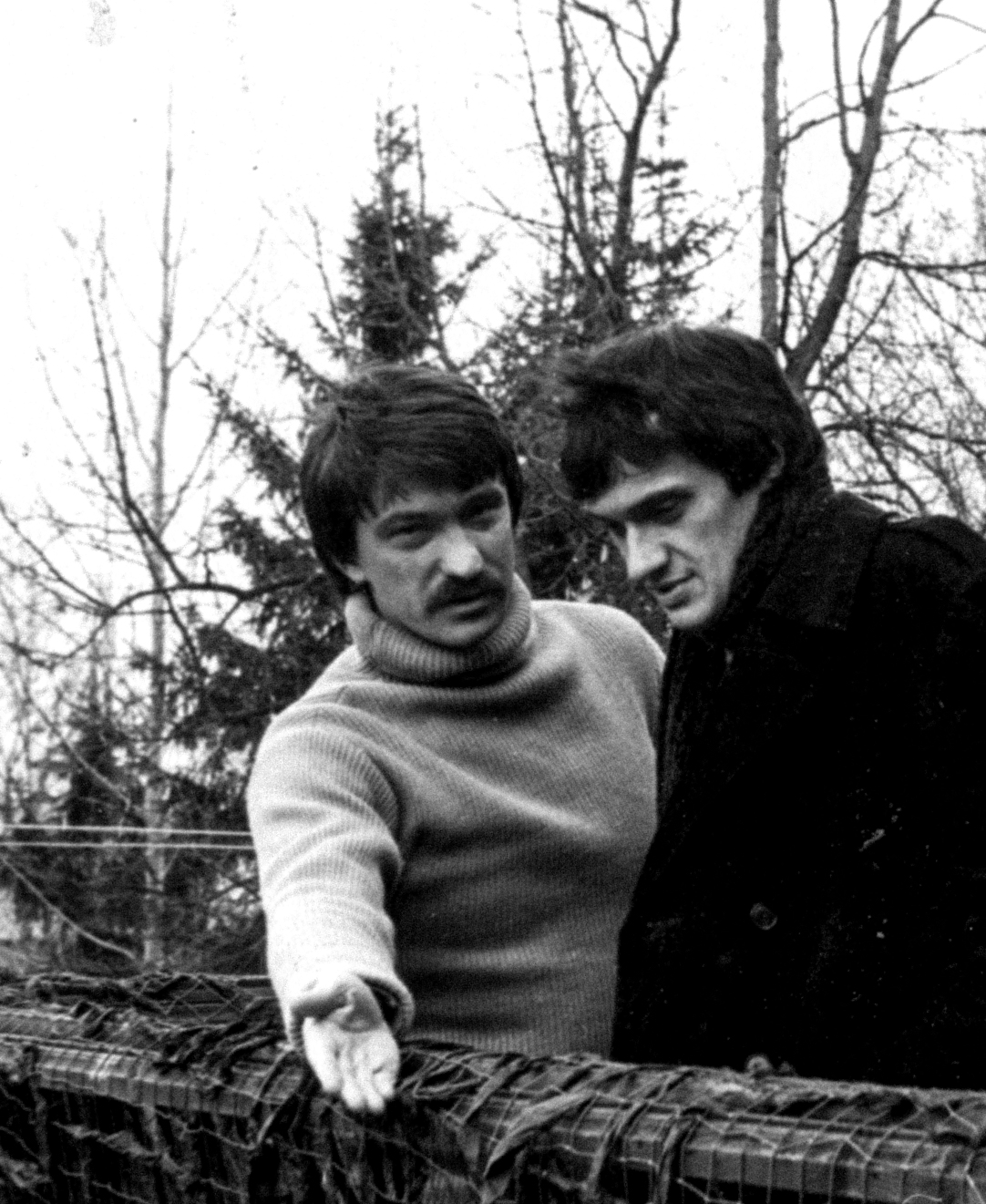 Режиссёр Александр Сокуров и сценарист Юрий Арабов на съёмках фильма «Скорбное бесчувствие». 1987