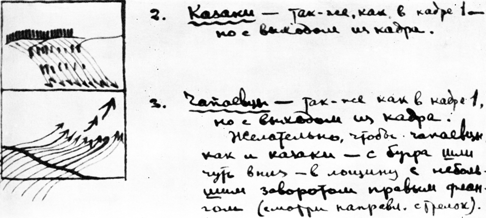 Эти 820 кадров дали всему коллективу полный макет будущей картины. Совершенно очевидно, что этот макет обеспечил картине и композиционное единство внутрикадрового построения и композиционную последовательность сменяющих друг друга кадров. Он являлся разработанной режиссерской экспозицией каждого монтажного куска, облегчал работу оператора, давал отправные точки, основные схемы актерского поведения в кадре.