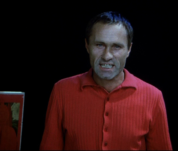 Знаменитые «ходячие» желваки, суженные глаза, лоб в морщинах, папироса во рту, который видится грозной чертой на лице, каким-то постоянным «нет», — призраки готовящегося выброса нервной энергии характерны для Шукшина-человека и Шукшина-актера. Сентиментальность, зажатая в кулаке, — его чувственный предел.