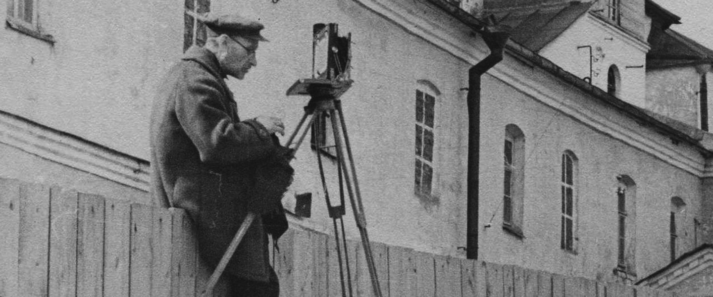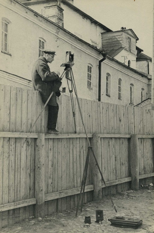 Гринберг за съемкой реставрационных работ в Загорске. Из собрания семьи фотографа