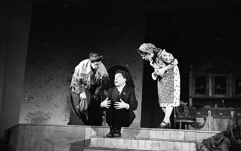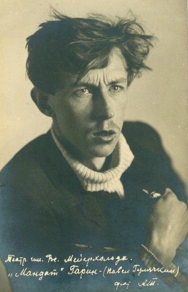 В 1956 году Эраст Гарин поставил в Театре киноактера «Мандат». Не худо бы сейчас вспомнить добрым словом того, неизвестного нам, человека, который дал разрешение на постановку этой пьесы Н. Эрдмана, да еще с публичным, на афише набранным посвящением спектакля памяти народного артиста РСФСР Вс. Мейерхольда.