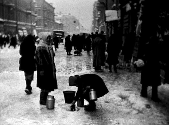 Обыденность этого ужаса не вместишь в сознание и не используешь для пропаганды, и оператор, снимая детей, бредущих через обледенелую Неву, инстинктивно отгораживается от него, «подгоняя» кадр под известные ему образы Перова, Некрасова и прочие картины народных страданий в «Святых шестидесятых» девятнадцатого века. В изображение словно внесена кощунственная «гармония», и эта искусственность делает кадр не трагичным, а сентиментальным — за что его и любили цитировать: страдания словно преподносились зрителю под анестезией — вроде и горе показано, и смотреть не страшно. Поэтому из года в год на экране и цитировались буквально одни и те же короткие кадры «ужасов блокады»: примелькавшееся всерьез не будоражит.