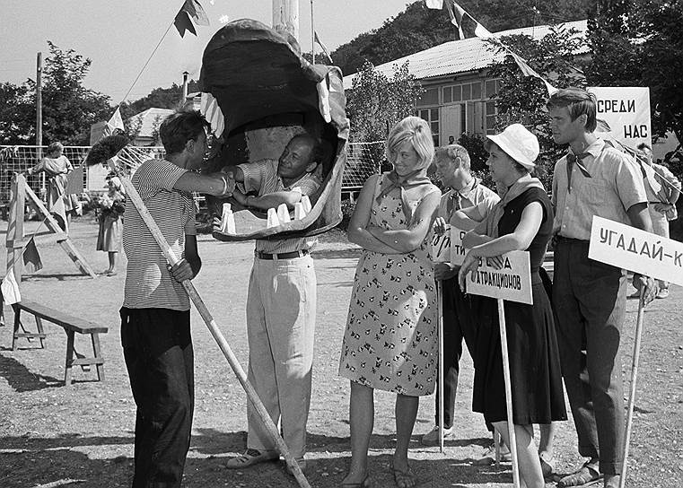 ‹…› герой Евстигнеева — Дынин, начальник пионерлагеря, где у входа написано и «Добро пожаловать!» и «Посторонним вход воспрещен!», — всю жизнь жил и работал в соответствии с инструкциями, в которых недостатка не было.