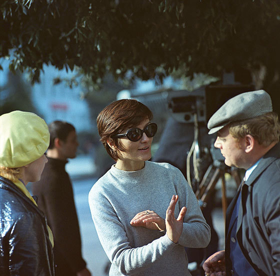 Или начало «Долгой счастливой жизни»: мокрое ночное шоссе. Двойные отражения в стеклах автобуса. Гитарный перебор. Девушка, танцующая твист на стоге сена. Жующий лось. Капли дождя на стекле. Дворники, ритмично стирающие эти капли... За этими картинками экспозиции — состояние героини, полное душевного спокойствия... Оно меняется вместе с погодой. Меняется как воздух: из осеннего он превращается в зимний, морозный. Выпадает снег, и так же внезапно происходит и смена декораций. ‹…›
