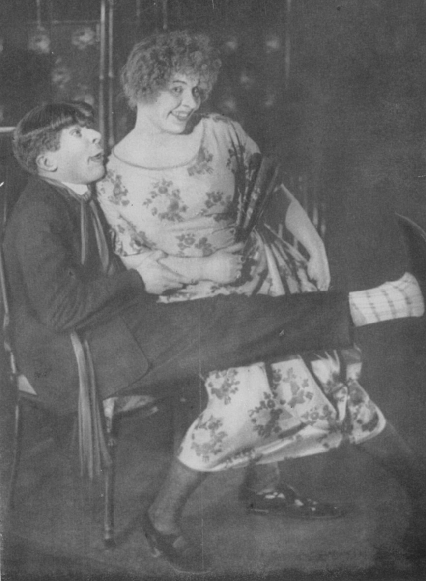 Золотистая густая прическа с завитой чолкой делает Мартинсона безлобым. Шеи нет, голова до ушей уходит в плечи. Элегантный костюм, кашнэ. Когда эта расфранченная горилла начинает говорить, из его горла вырывается нищенская скрипучая нота, одна и без признака модуляций. Но молодой человек знает себе цену. Все, что он делает, делает он, и все выходит свысока, демонстративно, подчеркнуто. Вот они наедине с невестой, разговор не клеится, он садится за пианино спиной к публике. С невероятным шиком ударяет клавиши аккордами сердцещипательного цыганского романса. Все его тело играет. Он весь как на шарнирах, то выбрасывается далеко от клавиатуры, то стремительно набрасывается на нее. Длинные обезьяньи руки высоко отскакивают в воздух. Эта сцена и последующая за ней, когда Валериан предлагает руку невесте, чтобы итти в другую комнату, а невеста понимает слово «руку» как предложение выйти замуж, и Валериан полон смятения от происходящего недоразумения, играются Мартинсоном характерным для него актерским приемом. Если действие достигает большого напряжения, он прерывает текст и выполняет пластически музыкальную паузу. И здесь, после того, как они друг друга поняли, Валериан идет, шатаясь, как в темном лабиринте, без определенного направления, путаясь в непрерывных тупиках. Яркая задача артиста ярко передается зрителю коротенькой пантомимой.