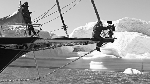 Это был технический сценарий для поиска денег, но и его я выбросил сразу же после первой съемки. Я поехал на Байкал, потому что знал, что там абсолютно прозрачный лед, даже если он метровый толщины, через него все видно — как будто это большой аквариум. И на нем такие узоры, трещины — особенно по утрам. Я поехал снимать эти трещины. А когда я включил камеру, то под лед на моих глазах провалилась машина. То есть на самом деле сначала я провалился сам. Я бродил по льду Байкала в поисках выразительных трещин и в экстазе от красоты потерял бдительность, провалился. Меня спас Сергей Копылов, мэр Ольховского района: он бросился в ледяную воду, нырнул под лед, рискуя жизнью. И он никому об этом не рассказал, даже жене. Меня бы физически могло не быть, если б не он. Как тех людей, которые проваливаются вместе с машинами на Байкале. Я, кстати, долго решал, использовать ли этот трагический эпизод. Но поскольку вот такие смерти — это не единичный случай, я решил, что должен включить его в фильм. Но вообще-то я снял жуткие вещи, и почти ничего из них в картину не вошло. После этих съемок мне стало ясно, что я уже не могу делать фильм ни про нехватку воды в мире, ни про глобальное потепление, ни про красоту Карибского моря. В этом эпизоде сразу заявлена сила воды — слева дырка во льду, справа дырка во льду, а там, где человек лежит подо льдом, — он непробиваем. И я стал думать: ну куда мне теперь ехать? Только в Гренландию. Меня предупредили, что то, что я хочу там снять,— обрушение айсбергов — может произойти через несколько месяцев, надо запастись терпением. Но с нами это случилось в первую же секунду, как только мы оказались на месте. Мы даже не успели поставить камеру на штатив. Или вот эти кадры, помнишь,— айсберги под облаками? Я сказал продюсеру — если я окажусь вот в этом месте ровно в 16.00, то смогу снять айсберги под облаками. А там километровые горы, куда можно попасть только на вертолете, который надо заказать заранее. У меня было всего 15 минут у — и я их снял!