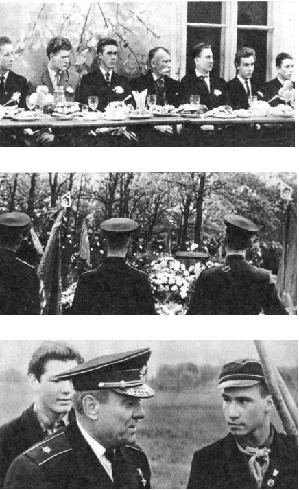 И пока молодежь проходит дворцовые ворота, украшенные львами, рассаживается в белом зале, диктор начинает рассказывать как будто бы совсем о другом: — Для этого замка латышские крепостные таскали камни на спинах. В эти ворота въезжали графы и бароны. На стенах белого зала вырезали свои имена наполеоновские драгуны и гитлеровские солдаты. А в первую послевоенную осень на паркете крестьяне сушили зерно... Время!..