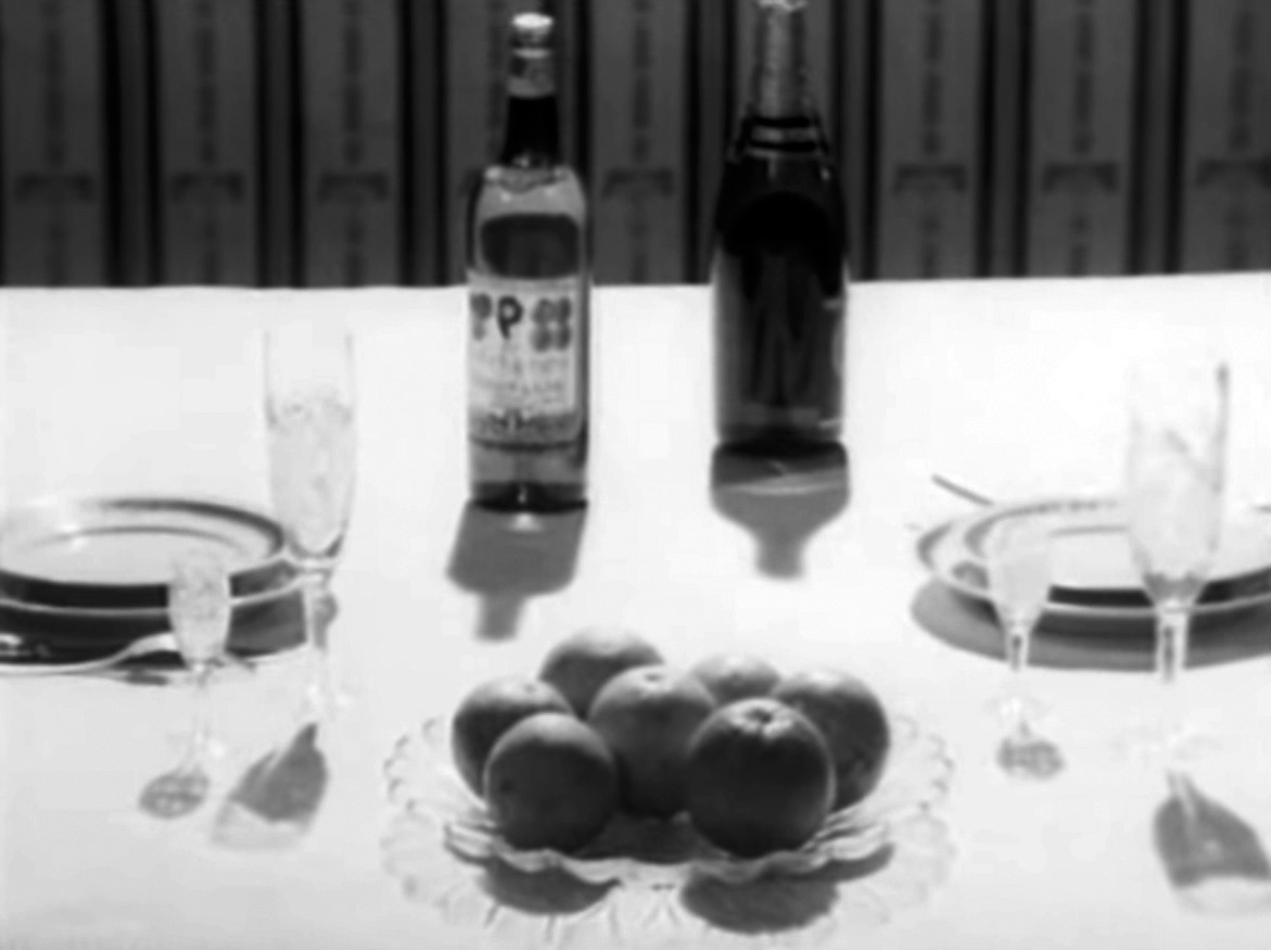Финальный кадр фильма достоин кинохрестоматий: стол на два прибора, бутылка шампанского, блюдо с апельсинами. Безлюдная выразительность предметов. Стройность натюрморта. Киногения! И то, что отсутствие одного апельсина чуть-чуть нарушает равновесие композиции, — напоминает о драме.