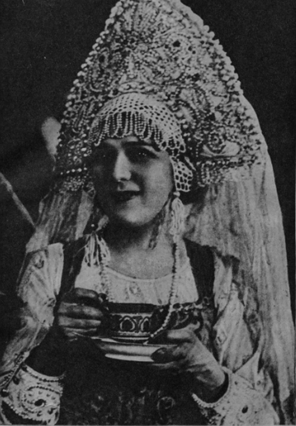 — Да, Пикфорд была и впрямь феноменально популярна в двадцатые-тридцатые годы. А познакомилась я с ней, когда она приехала в Россию вместе с не менее известным в те годы актером Дугласом Фэрбенксом. Я тогда играла в немом кино. Как раз во время визита американских звезд я снималась с Игорем Ильинским в одной ленте, и «Межрабфильм» организовал фотосъемку для плаката, на котором мы вчетвером и изображены. Приезд голливудских звезд вызвал в Москве невероятный ажиотаж. Гости посетили кинофабрику, и на большом приеме Мэри Пикфорд в качестве подарка преподнесли мой кокошник, в котором я тогда только что отснялась в фильме «Победа женщины».