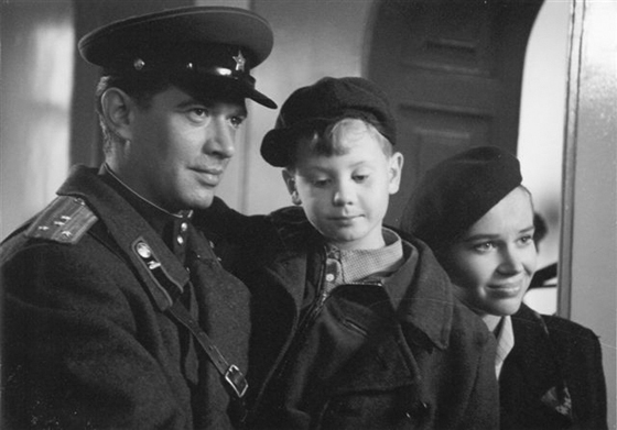 Время от времени мальчику является призрак отца, которого он не застал в живых: отец, вернувшийся с войны израненным, умер до рождения сына. Отметим, не углубляясь в гамлетовские дали: такого рода ходы давно отработаны и списаны в архив. Слава богу, была классическая встреча с погибшим отцом в «Заставе Ильича» Марлена Хуциева шестидесятых. Тогда это казалось внове и слыло поэтическим откровением. Был развернутый эпизод в «Сибириаде» Андрея Кончаловского восьмидесятых. Герой, оказавшийся в хижине среди болотных топей, видит в окошко удаляющуюся фигуру и истошно кричит: «Папаня!» Кстати, для Кончаловского было важно, что фигура облачена в шинель. Так смыкались темы отца и Отца (народов). Для Чухрая эта смычка тоже более чем существенна: она педалируется. Но не в связи с явлением призрака, а в связи с вором Толяном. Призрак же, то приветствующий сына из проплывающего мимо поезда, то запросто навещающий его в коммуналке, ничего, кроме неловкой зрительской улыбки, вызвать не может: костюмированная символятина-с.