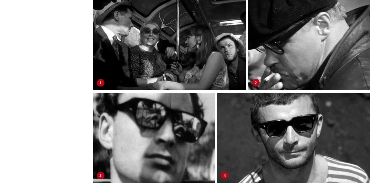 «Деревенщик» Шукшин тоже обыгрывает семантику темных очков, маскирующих и скрывающих внутренние душевные движения: для него очки становятся одним из атрибутов «личины», которую носит горожанин, подчиняющий себя, по словам режиссера, «маленьким нормам» и обесценивающий эмоциональную открытость, естественность, искренность. В фильме 1969 года «Странные люди» одетый по последней моде молодой человек в темных очках появляется в первых же кадрах, которые исследователи считают отсылкой к эстетике «интеллектуального кино». Перед зрителем — вращающиеся карусели, на которых восседают серьезные взрослые мужчины и женщины. Их лица и позы почти неподвижны. На заднем плане обычная реалия городской жизни — очередь, ряд глядящих друг другу в затылок людей, символ цивилизационного порядка. Смена ракурса — и зритель наблюдает четко разграфленную плитку тротуара и прохаживающуюся туда-обратно фигуру. В такт с движением качелей в кадр попадает спокойно-равнодушное лицо — оно не выражает ничего, блестящая поверхность очков непроницаема, она лишь отражает очертания кого-то сидящего напротив. В мире отчуждения, каким предстает здесь современный город, темные очки — более чем уместный аксессуар. О другом порядке жизни, где есть потребность в близости и родстве, природная гармония и детская незащищенность, напоминает нежно любимая Шукшиным песня «Миленький мой, возьми меня с собой...» и сменяющая кадры городской повседневности символичная картина — ребенок в белой рубашке посреди цветущего луга. Этому миру принадлежат герои шукшинского фильма — «странные люди», способные на эксцентричные выдумки и «неразумные», с житейской точки зрения, поступки, пренебрегающие прагматическими соображениями, в общем, как говорил сам Шукшин, «не посаженные на науку поведения».