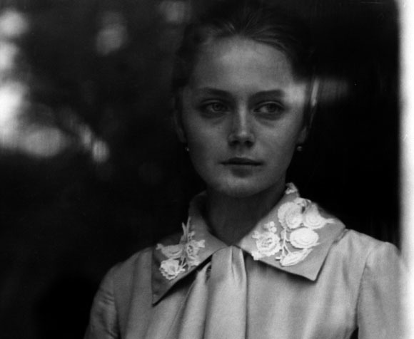 В «Дяде Ване» я применил такой игольчатый удар в сцене прощания Елены Андреевны с Астровым. Они стоят у окна, разговаривают. «Я об одном вас прошу: думайте обо мне лучше», — говорит она. «Останьтесь, прошу вас. Сознайтесь, делать вам на этом свете нечего», — отвечает он. И вот в общий план двух стоящих у окна фигур я врезал внезапно возникающий, очень короткий, клеток всего на десять-пятнадцать, крупный план Елены Андреевны, умышленно снятый с близкого расстояния деформирующей короткофокусной оптикой. Получилось очень экспрессивное, удлиненное лицо с большими удивительными глазами. Если бы этот кадр длился так долго, чтобы его можно было рассмотреть, то лицо актрисы показалось бы зрителю уродливым, но я заранее знал, что врежу его всего на доли секунды, он будет как перчинка в супе, как жемчужина в короне. Две темные фигуры у окна, затем мгновенный укол — крупный план, и снова общий — тот же коридор, те же фигуры.