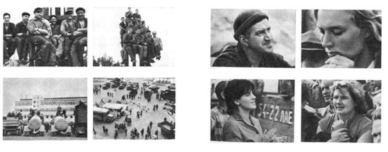 Об одной из таких встреч на городской стройке редакция вечерней газеты поручила мне дать короткий репортаж в номер: «Один-два снимка и несколько строк», — сказал редактор. Приезжаю на стройку, спрашиваю, где будет концерт. Никто не знает. Потом, вижу, на площадке, среди недостроенных домов, плотники сколачивают что-то вроде сцены. А в полдень со всех сторон начали стекаться зрители. «Партер» шел со своими скамейками и досками, забрызганными известью и цементом. «Бельэтаж» подъезжал на грузовиках и самосвалах. Из окон еще не достроенных домов выглядывала «галерка». А когда все лучшие места были заняты, кто-то подогнал автопогрузчик, опоздавшие чинно уселись на досках, и над «партером» поднялась «ложа» с публикой. На пустом месте возникал новый мир, вещи теряли свое привычное назначение: машина — не машина, кран — не кран. И люди тоже перевоплощались, молодели на глазах и обращались с вещами, как дети, подчиняя их своей игре. Да это и была настоящая игра, игра в перевоплощение, в которой все решали фантазия и смекалка.