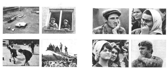 Я побежал на «галерку» сделать снимок с верхней точки. Хотелось схватить эту игру на строительной площадке в одном кадре, общим планом. Но то, что я увидел, поразило меня. Внизу, в кадре, все время мелькали люди, машины, была какая-то неразбериха. А с высокой точки «галерки» было отчетливо видно, как из хаоса и толчеи вырастает настоящий амфитеатр, с четкой и строгой архитектурой. Когда ведущий вышел приветствовать зрителей, деревянный помост уже был плотно окаймлен «живой подковой». Я спустился вниз, снимал крупные планы, детали, жанровые сценки, чтобы ничего не забыть. У меня было предчувствие, что фотографии пригодятся не только для газеты. А концерт шел. Василий Лановой читал Маяковского, слова ложились, как блоки, такие же светлые и весомые. Затем была сценка из «Макара Дубравы». Потом снова поэзия: «Гренада, Гренада, Гренада моя!..» Известно, что в момент соприкосновения с искусством человек бывает удивительно красив. В картинных галереях, в концертных залах видеть людей в подобном состоянии вполне естественно. А тут, на строительной площадке, в буднично атмосфере красота эта была еще более разительна.