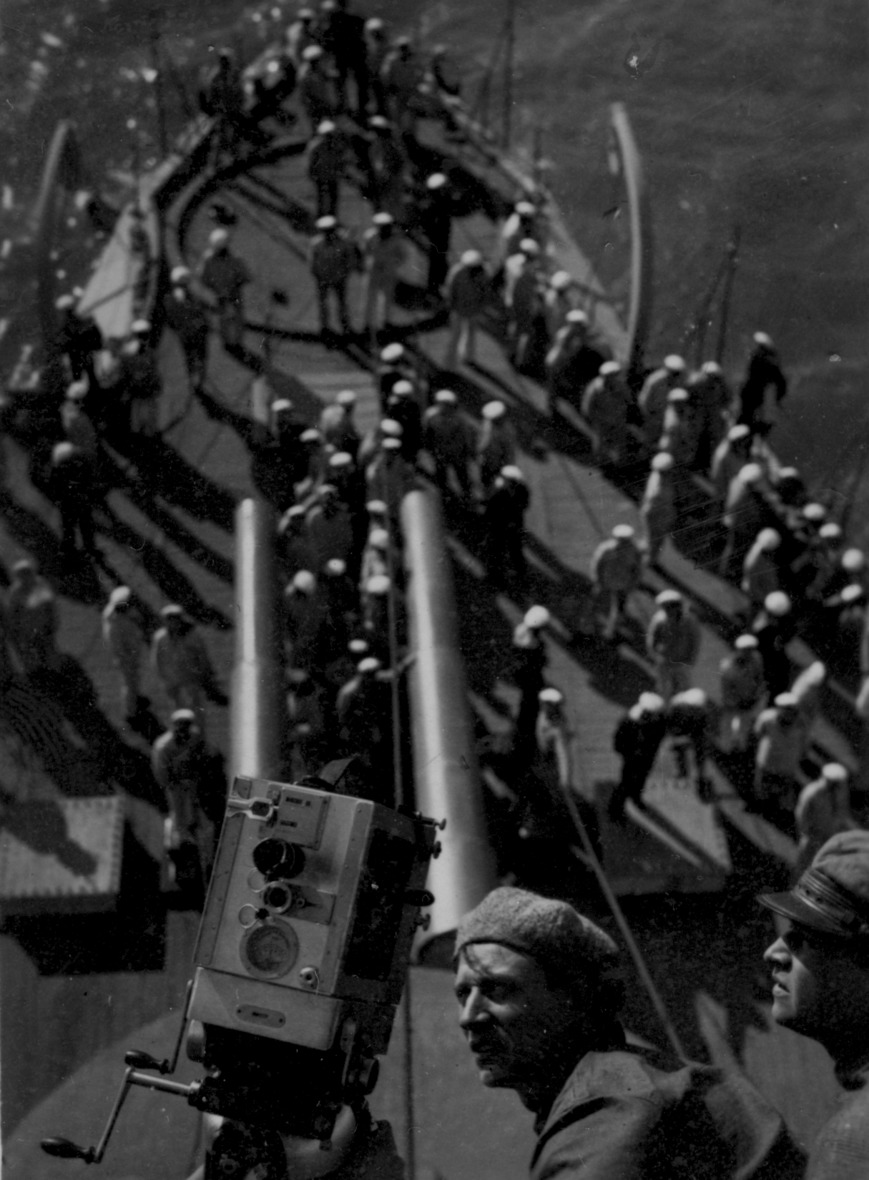 Перебивка не нарушает «монтажной увязки». Съемки «Броненосца», Тиссе с Эйзенштейном въезжают на «Броненосце» в застойные воды совкинематографии. Поднимают волны. Чуть не тонут в прибое хвалебных рецензий и отзывов, докатывающихся к ним со всех сторон СССР и из-за границы.