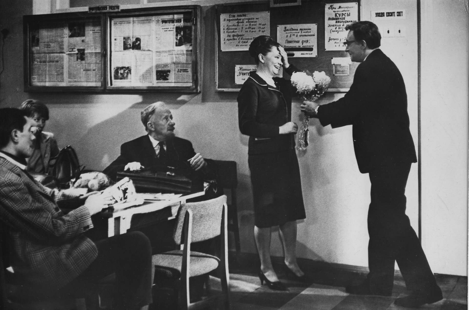 Впрочем, эти неудачники вызывают, как правило, искреннее сочувствие зрителя. Такова старая дева Светлана Михайловна из «Доживем до понедельника» (1968), а нелепая маленькая старушка из «Завтра, третьего апреля...» (1969), которая пытается заинтересовать старшеклассников картиной «Три богатыря», кажется еще более жалкой и трогательной. Но самым обаятельным из всех горе-словесников стал, конечно, Константин Михайлович — Костя из фильма «Урок литературы» (1968). Этот молодой учитель с самого начала уверен в собственной несостоятельности. И когда однажды он решает провести один день без лжи, на родительском собрании разворачивается удивительное обсуждение: