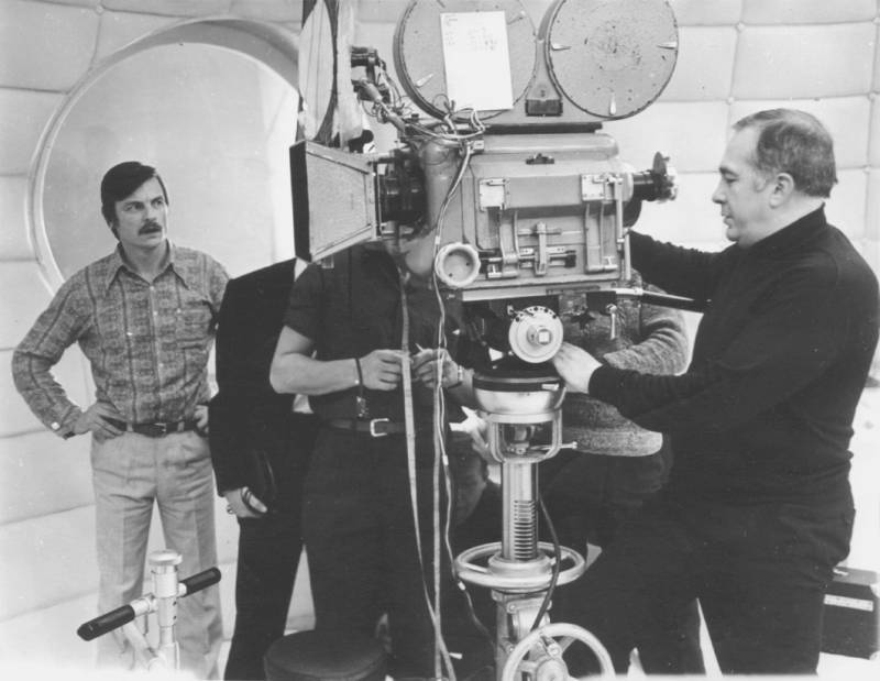 Тарковский вместе с Юсовым подготавливают съемку сцены в библиотеке. «Вадим, это должен быть красивый симметричный план!» Юсов, как всегда, сдержанно ироничен: «Красивый план — это как получится, а симметричный снять в кривой декорации мы не сможем». Дело в том, что декорация космической станции «Солярис» выстроена точно раковина, закрученная по спирали.