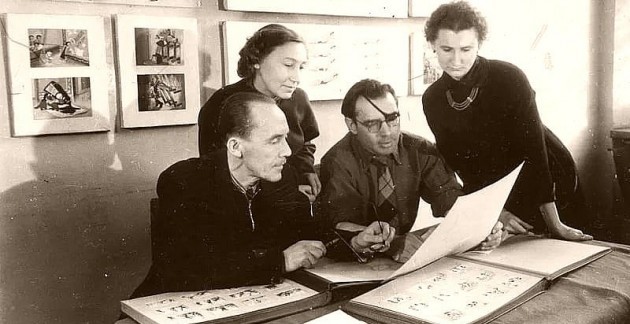 А потом был фильм «История одного преступления», и мы, молодые мультипликаторы, завидовали тем, кого Хитрук отобрал для работы над картиной. Фильм этот делался групповым методом, и Федор Савельевич набрал группу из своих бывших учеников — еще совсем «зеленых» выпускников курсов. Вспоминается почти юный Сергей Алимов, и сам Федор Савельевич, безнадежно старый (ему в то время было аж сорок четыре года)... Мне все время хотелось приходить в группу и смотреть, что там делается. Это была настоящая тяга. До сих пор помню то ощущение свежести и света — да-да, физическое ощущение чего-то, похожего на сияние, которое буквально излучала комната, где работала группа Хитрука, комната, сияющая солнцем и новыми именами — Люрса, Дюфи, Брак, Стенберг, шелест ярких эскизов (непривычно ярких), перекрестные вопросы, беззлобное подшучивание, возбужденный разговор, гордость собой. И в центре этого художественного праздника — Хитрук.
