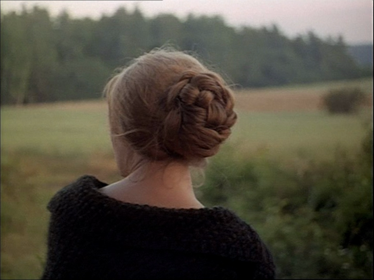 Можно привести в пример и следующий план: он начинается с портрета Тереховой, затем камера панорамирует по комнате и вновь возвращается к лицу актрисы, которое освещено уже