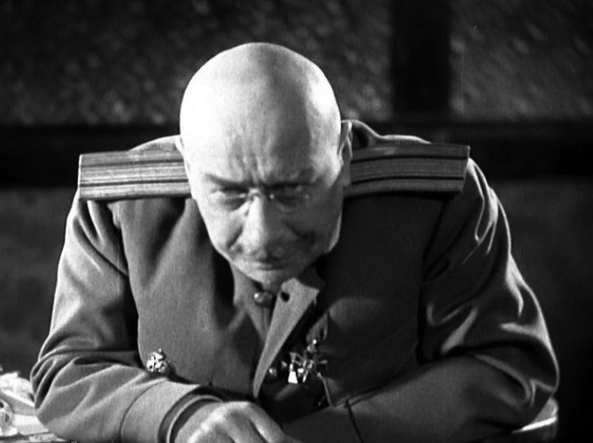 Вот почему так удачен в картине образ полковника Бороздина. Вначале он — либерально-гуманный, просвященный начальник. Но «гуманность» не состоялась: пришлось засечь шомполами перебежчика брата Потапова, ординарца полковника. И когда, пережив смерть брата, Потапов, растеряв свою преданность, бежит к Чапаеву, либеральность Бороздина рассеивается. Перед зрителем уже окончательно оформившийся откровенный враг, распекающий расхлябанного прапорщика, организующий и приводящий в исполнение план разгрома Чапаева. Этот образ дан в картине не как застывшая маска белогвардейца. Он движется, переживает свое развитие, находит свое завершение. От сцены «Лунная соната» —образ культуры и высокого духа — до разбойничьего нападения на чапаевцев лежит путь событий и чувств, убедительно рассказанных в картине.