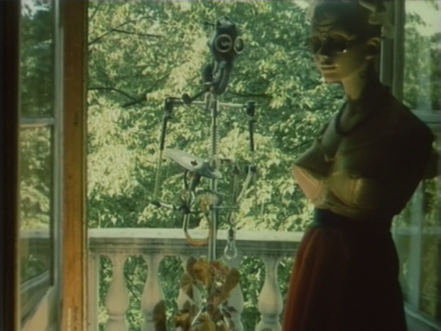 И тогда в Игру впервые действительно вступает главный герой. Он запускает колесо станка; но колесо крутится против часовой стрелки, в обратную естественному ходу времени сторону. Ничего нельзя изменить, ничего нельзя поправить. Даже пар не валит из окна, как предполагает природа и время, а наоборот, втягивается в него. Яйцо лежит на тарелке в комнате, где танцуют Дама и Темный человек, а не на своем алтарчике — киноаппарате. Выиграть невозможно. «Игра окончена» — объявляет Система через экран монитора.