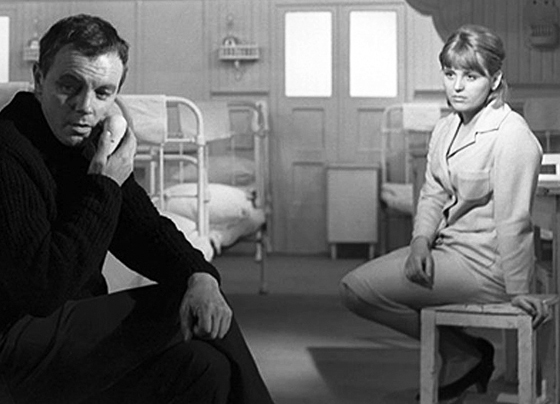 Перед глазами зрителей разворачиваются события Лениного детства. Мы видим нелепого героя, с тихой радостью совершающего подвиги, его женитьбу на некрасивой женщине с постным, равнодушным лицом и Ленину попытку броситься в воду от неразделенной любви. Воспоминания Лены полны иронии, они легко вписываются в шутливый тон ее беседы с Виктором. Но это не просто к слову пришедшая история — это первое испытание героя. Виктор мог не понять Лену, мог продолжить веселый разговор, но он понял все так, как хотела Лена, как мог понять только он. В ответ он стал вспоминать совершенно серьезную историю своего спуска на лыжах с крутой горы. И ирония ушла сама собой, и все между двумя людьми стало просто и понятно.
