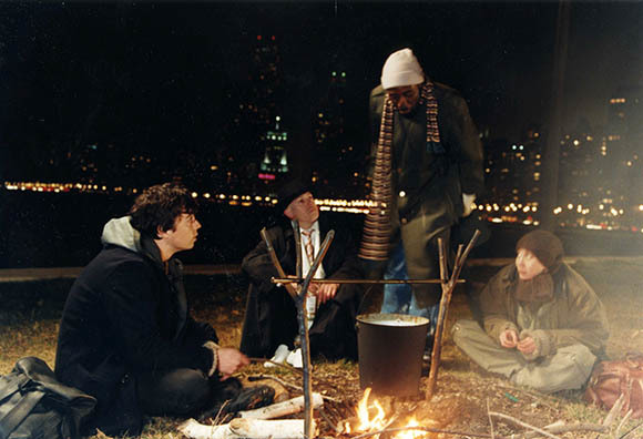 Петербургский дом в фильме «Брат» вообще квинтэссенция бездомности, какую комнату или квартиру ни возьми. Огромная родительская хата, в которой тусуются кислотники, почти лишенная мебели, — чуть не единственный стул (антикварного вида) сжигается в камине (не менее антикварного вида). Квартира, в которой устраивается засада, — ободранная, нежилая, загроможденная случайной мебелью, вписанная в сложную конфигурацию петербургского флигеля (из комнаты видно окно кухни), — явно не принадлежит тем, кто там находится в момент вторжения. Чья-то художественная мастерская со снесенными стенами, сплошь завешанная картинами, не дом, но клуб по интересам, пространство для общения и творчества, но не жизни. И городские люди — приноровившиеся, приспособившиеся к этому бездомью, научившиеся создавать себе хрупкий призрак жилья из ничего: из чужого золоченого бра, потертого коврика на стенке, любимого плаката, из общего костра и общего чайника под совсем уж условной кладбищенской крышей.