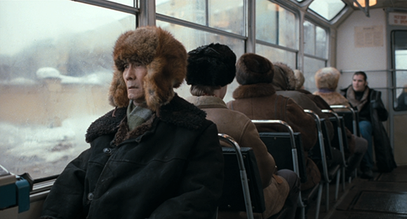 Уличная толпа в фильмах Балабанова полностью лишена характера, эмоции, ритма (исключение — «Трофим» и уже упоминавшийся день ВДВ в «Мне не больно»). Она не распадается на лица, мы не подслушиваем и не подсматриваем, нас не интригуют случайными обрывками чужой жизни — толпа лишь непременная часть городской среды, ее обстановка: как дома, телефонные будки, трамваи или машины. Режиссер подчеркнуто отделяет героя от всех, с кем тот вынужден физически соприкасаться, перемещаясь в людском потоке: персонаж движется в толпе особо, не сливаясь с ней, не взаимодействуя, отгороженный невидимой оболочкой, как коконом. Ритм движения задается не ритмом города, а музыкой, звучащей в кадре и отсекающей городской шум в сценах таких проходок. Музыка может быть объяснена (мы видим, как Данила вставляет в уши наушники и нажимает play) или остается без дополнительных вводных, как в «Кочегаре», — неважно: ее задача — обособить героя, нарастить кожу, защитить от навязчивого прикосновения чужого и чуждого мира. Исключение делается, как правило, только для трамвайных звоночков, но трамвай не улица, в нем не толпа, но люди, каждый из которых точно так же сам по себе, сам с собой, наедине со своей тревожностью и одиночеством. Когда Иван Скрябин в «Кочегаре» выходит из трамвайного вагона (в начале фильма), оставшийся пассажир — обычный горожанин, навьюченный обоями и тяготами жизни, — смотрит ему вслед и покачивает головой в такт закадровой музыке... как будто ее слышит. Но это, скорее, исключение, и у трамвая в балабановском кино роль особая, о чем речь впереди.