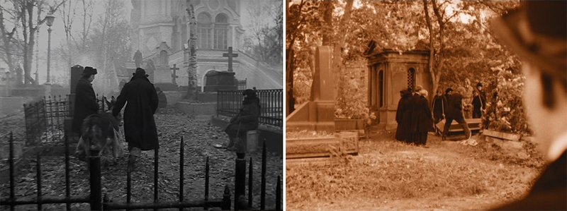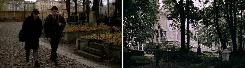 Особенно это очевидно в сцене, когда Данила прощается с Немцем на кладбище, а Светин трамвай проезжает мимо и отсекает прошлое Данилы от будущего.