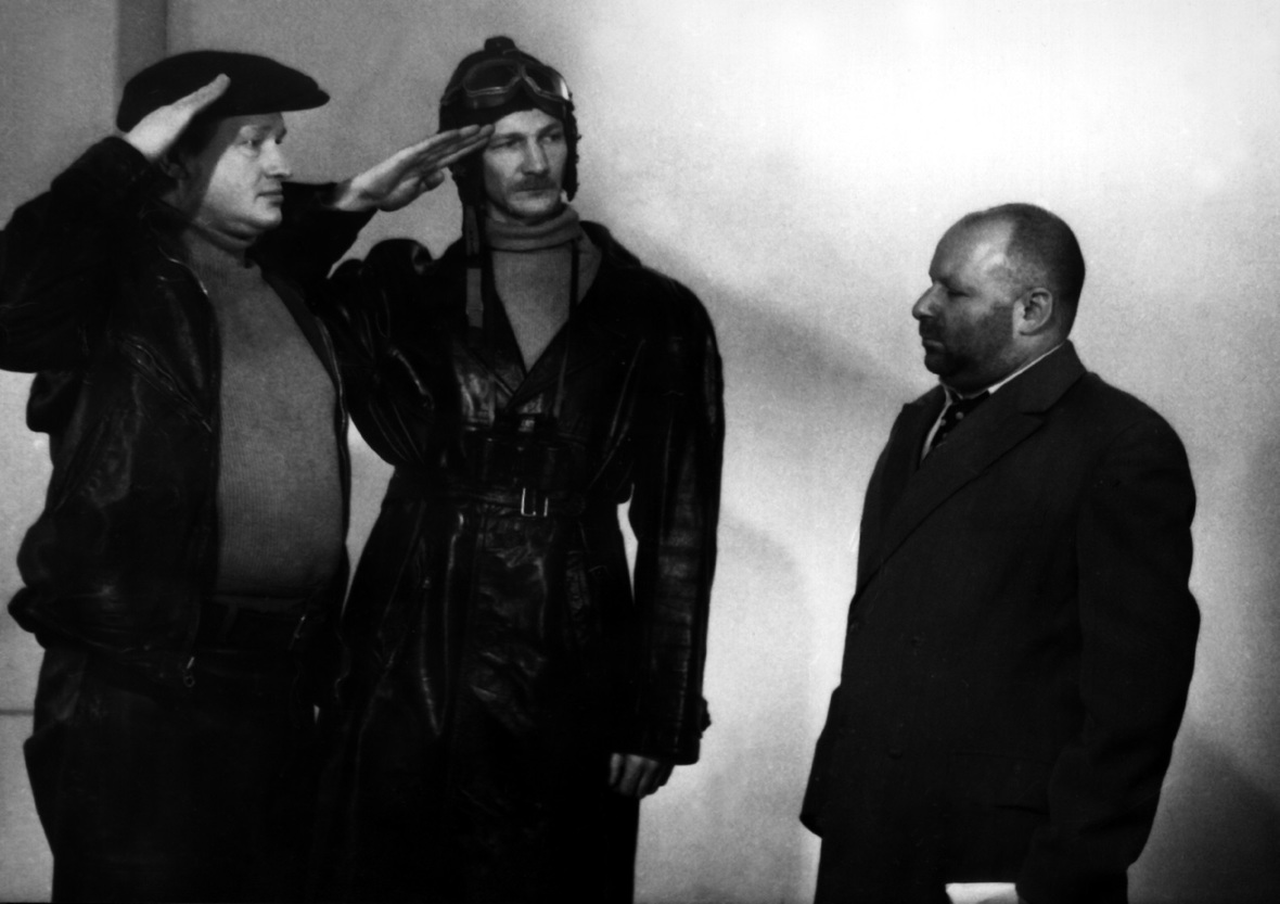 Блистательная короткометражка Максима Пежемского «Переход товарища Чкалова через Северный полюс» (1990) — еще одна устойчивая рифма к фильму Германа — предвосхитила многие изобразительные решения «Хрусталева». Чего стоит хотя бы сцена охоты товарища Берии за товарищем Чкаловым! Отважный пилот прячется в коммунальном сортире, а лукавый Лаврентий, что называется, мочит его из всех подручных стволов. Вот уже сортир изрешечен пулями насквозь, а товарищ Чкалов остается живым, как и положено любимому герою!