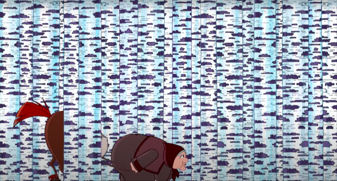 К. Бронзит. Нет, мотивации были другие. В фильме «Кот и Лиса» мне хотелось сделать красивую картинку. Просто очень красивую. Пришлось много книжек полистать, в том числе иллюстрации Юрия Васнецова. В итоге в фильме сложилась интересная комбинация из разных источников. Например, платье у Лисы буквально срисовано из книжки о суомских и карело-финских женских нарядах. Никто этого, конечно, не заметил, но я-то знаю. Сначала вообще представлял картину в виде плоских гобеленов, но потом все стало по-другому, но тоже богато. Очень хотелось, чтобы как можно больше кадров вызывали почти восхищение (у меня самого, по крайней мере.) «Кот и Лиса» — фильм, в котором я как художник-постановщик (совместно с художником и аниматором Дариной Шмидт) больше обычного работал над визуальным рядом. Раньше мне это казалось не особенно важным, а здесь — наоборот. <...>