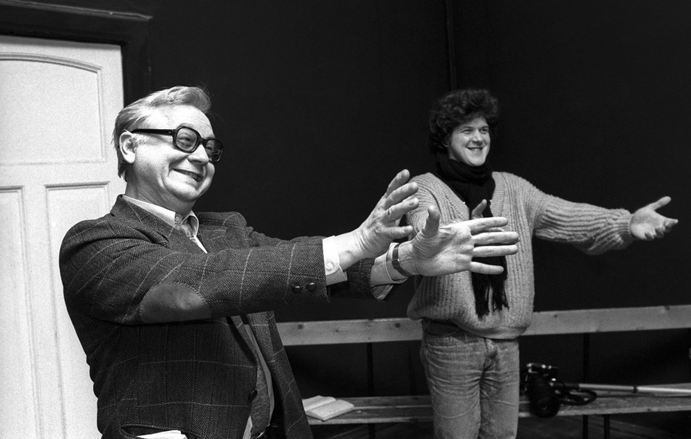 А во втором семестре первого курса мы уже показали первую «драматургию», над которой тоже работали весьма своеобразным способом. Мы брали в ситуации саму драматическую коллизию, «выигрывали» ее изнутри, поверяя это жизненным и эмоциональным опытом наших студентов. Это не было просто каноническим текстом автора; это иногда рассказывалось своими словами, а иногда было и текстом автора — когда мы смогли пройти достаточно далеко в работе со студентами, а студент был достаточно способным человеком. Но мы подходили к этой серьезной драматической коллизии изнутри, исходя из того жизненного и эмоционального опыта, который имелся у студентов, и он поверял собой ту действительность, которую предлагал ему автор. И вот эти драматические коллизии, освоенные таким образом, изнутри, нашими воспитанниками, coставили репертуар второго семестра I курса.