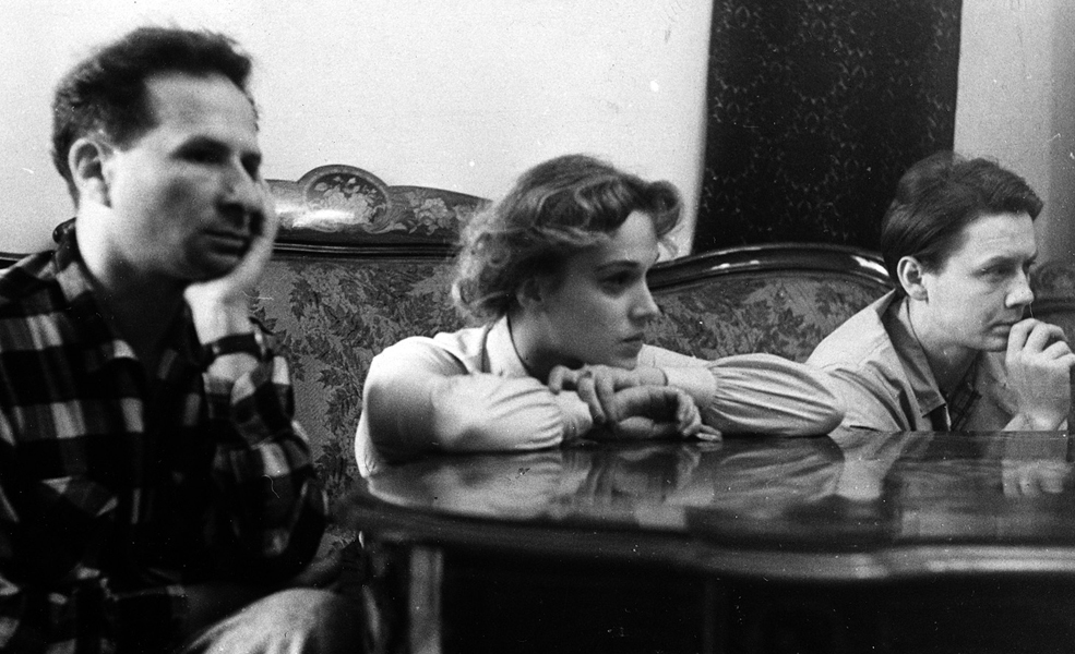Сейчас, возможно, стоит поделиться тем опытом, который сложился у нас, и немного рассказать о той дороге, которой мы пошли в реализации программы обучения молодых актеров. Вначале мы прослушали вместе с моими более молодыми коллегами по театру «Современник» (Авангардом Леонтьевым, Валерием Фокиным, Константином Райкиным, Сергеем Сазонтьевым, Владимиром Поглазовым, специалистом по пластике и движению Андреем Дрозниным) более трех тысяч московских детей в возрасте 14-15 лет и отобрали из них 53. Они стали Студией, драматическим кружком, который два года просуществовал при Бауманском районном Дворце пионеров им. Крупской в Москве. <...> При этом они учились в двух последних классах средней школы.