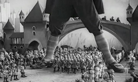 Освоив задачу показа «лилипута среди Гулливеров», мы с подлинным энтузиазмом взялись за предложенный Г. Рошалем сценарий о приключениях нового Гулливера среди новых лилипутов.