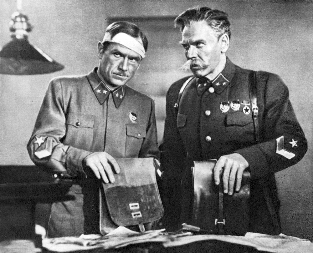 Первый из них — Жуковский (артист Акад. театра им. Пушкина), играл у нас в «Обороне» роль Старшины — ходока-крестьянина. Он же играл роль адвоката в «Выборгской стороне», Бати в «Чкалове» и пр.