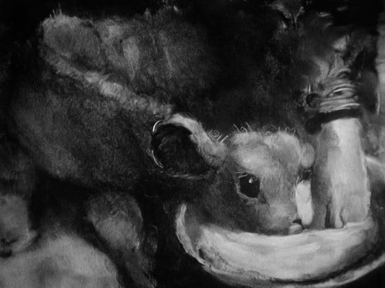 Я помню, что он очень переживал за меня в начале нашего обучения на первом году Высших курсов. Это было первое или второе задание, я сейчас уже не помню. Нужно было принести несколько режиссерских идей по заданию, которое формулировалось как «Подготовка и производство одноминутного анимационного фильма». То есть нужно было принести какую-то идею, какой-то сюжет или рассказ, который можно уместить в одну минуту экранного времени. Так сложилось, что тогда в Москве как раз работал мой хороший друг Владимир Петкевич, тоже выпускник Высших курсов и тоже ученик Хитрука, но он уже делал четвертый свой авторский фильм, снимал на «Союзмультфильме». Дело шло довольно туго. Поскольку я был художником на первых его двух работах, он меня попросил помочь. Надо было спасать ситуацию, и вместо того, чтобы ходить на учебу, я перебросился на амбразуры. Я сказал об этом Хитруку, сказал мастерам. Все, в общем, об этом знали, меня отпустили, понимая, что цеховое братство превыше всего — надо выручать друга. Но пошел уже второй месяц обучения, а я утонул в производственном процессе. У меня не было времени ходить на занятия так регулярно, как было нужно, и приносить эти самые идеи. Я приносил какие-то мысли, которые возникали просто в промежутках достаточно изнурительной работы над фильмом. То, что я приносил Хитруку, мы обсуждали всей мастерской, и мои идеи все время отклонялись. В конце концов, на третьем занятии Хитрук просто сказал: «Это слабо». Притом я вижу, что ему просто стыдно за то, что я принес. Мне кажется, у него было какое-то особое отношение, ему было страшно обидно за то, что его ученик настолько бездарен, что не может принести что-то стоящее. Я уж не говорю новое—просто внятное. У меня как-то так получалось, что я хоть и приносил какие-то идеи, но они все были, так сказать, вторичные. То есть то ли где-то подсмотренные, то ли у кого-то не то, что слизанные, но такие идеи, которые не выныривают из собственного опыта, из каких-то собственных мучений, а лежат на поверхности. Я чувствовал, что его это страшно беспокоит. Мне кажется, его обижало, что я не соответствовал каким-то его планам или представлениям обо мне. Эта моя беспомощность очень удручала. Не знаю, может быть, это только мое впечатление, но я так это воспринимал. Потом я вдруг понял, что надо с этим что-то делать и всерьез заняться поиском. И появилась как раз идея будущего фильма «Корова». Фильм начался с одноминутного сюжета, который от нас требовал Хитрук. Была такая маленькая новелла про корову, которая ожидает, что ее завтра зарежут. И пока ожидает, за это время вспоминает свою жизнь. За одну минуту я хотел рассказать всю жизнь коровы. За минуту не получилось, но я снял какой-то материал. Снимал я в Свердловске на остатках пленки, которые мне приносили операторы, и в свободное от работы других режиссеров и операторов время. В общем, брал камеру и снимал кино. Вот таким образом у меня возникло начало моей будущей «Коровы» — просто материал для отчета за первую курсовую. Но когда я показал его Хитруку и Норштейну, они вдруг увидели в этом что-то большее, и это была идея Хитрука (как мне кажется, сейчас не помню точно) продолжить работу над фильмом и сделать уже более развернутую картину. Она закончилась дипломной десятиминутной лентой. Хитрук постоянно следил за работой. В работе над «Коровой» у меня б