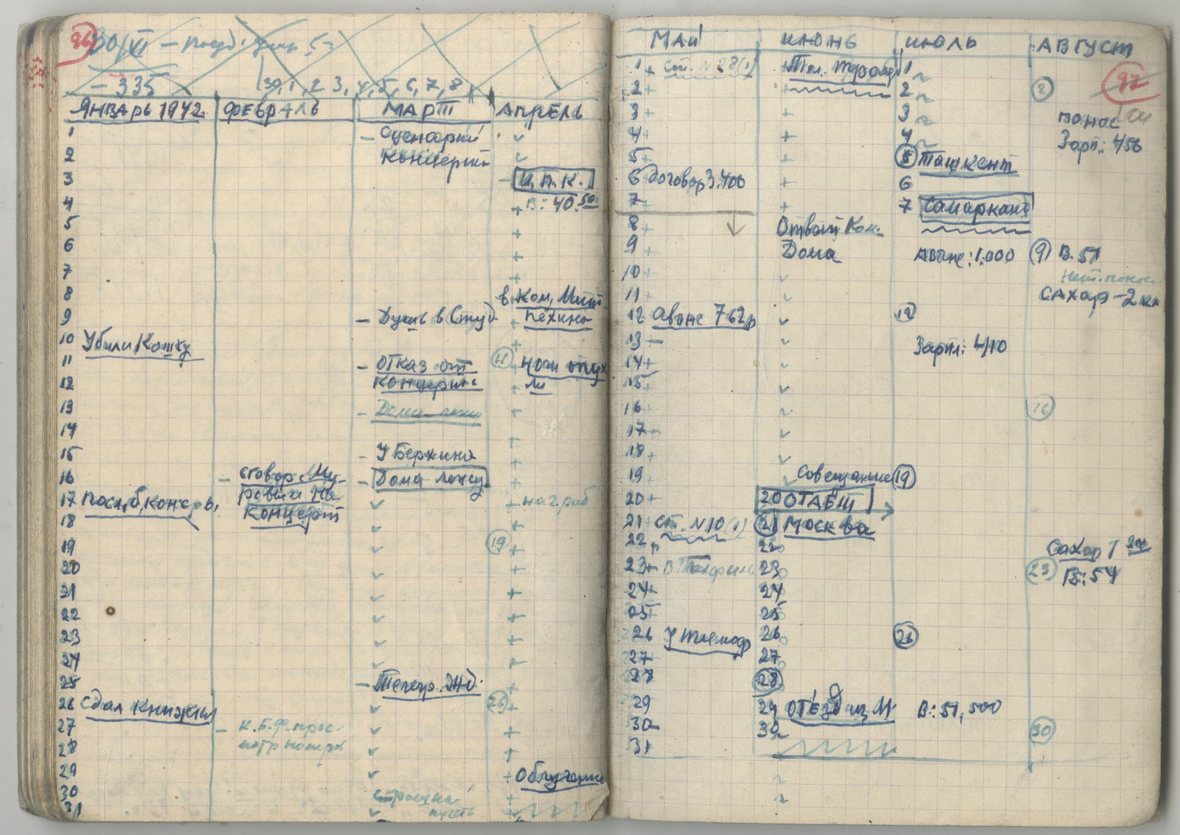 Записи из дневника Михаила Цехановского за декабрь 1941 года. Упоминаемый отъезд состоялся летом 1942 года — Михаил и Вера Цехановские уехали в эвакуацию в Самарканд в составе студии «Союзмультфильм».