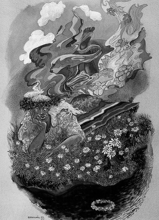 Ощущение такое что автор рисунков, прежде чем браться за лист ваттмана, сам сыграл все роли, всех своих персонажей. Побывал в образе и поющего-танцующего философа, и усталого Мефистофеля с его эпиграммами, и сам посидел, скорчившись, у жутковатой лунной дорожи.