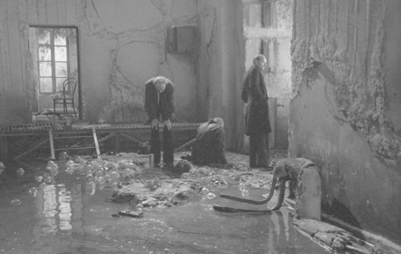 Если в «Зеркале» главное противопоставление было временны́м (то есть между сейчас и тогда), то в «Сталкере» оно пространственное — между Зоной и миром за ее пределами. Начинается фильм как раз в этом мире, и он достаточно быстро заявляет о том, что это за среда — как визуально, так и по звуку.