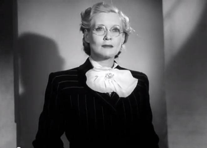 Актриса кокетлива, элегантна, ее волосы распущены, на лице — неуверенная улыбка (знак женственности). Она носит светлые, развевающиеся платья, шляпки, перчатки, домино, прозрачные чулки. В танцевальных номерах камера останавливается на ее ногах и обнаженной спине, она поселена в мир фантазий, связанных с образами традиционной женственности: Одетты, Сильвы, Травиаты, спящей красавицы, цыганки, Людмилы. Ученая, конечно, в очках, волосы убраны в пучок, она одета в темную бесформенную вязаную кофту, в длинную юбку, у нее мужская манера курить, и ее безапелляционность кодируется как мужское поведение. В сюжете они меняются местами. Актриса должна давать умные интервью, ученая — научиться носить вечерние туалеты и говорить о любви. В конце концов фильм убеждает нас, что советская женщина так же буржуазна, как и западная красавица, что меха — такие же привычные предметы обихода в ее быту, как икра и шампанское на столе любого пролетария (это утверждала «Книга о вкусной и здоровой пище», впервые вышедшая в 1939 г. и переизданная в 1946, 1948, 1952 гг.).