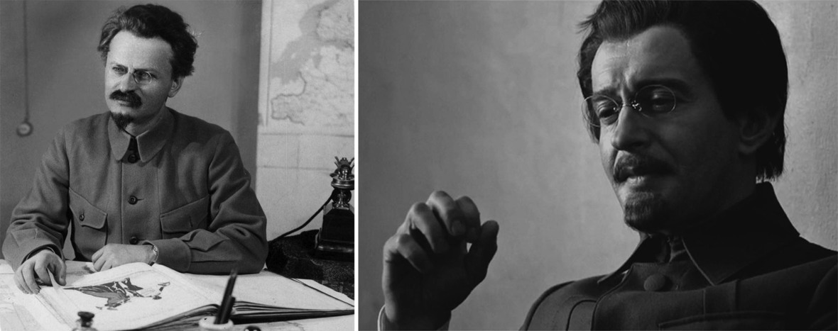 Лев Троцкий, красавец, трибун, пламенный и неистовый, демон и вождь мировой революции, имевший невероятную популярность у публики, в фильмографии советского и российского кино до сих пор был представлен слабо и поверхностно. В ноябре 2017 года, к столетию революции, на телеэкраны выходит сериал «Троцкий» (продюсеры Константин Эрнст, Александр Цекало, режиссер Александр Котт), с Константином Хабенским в главной роли. Хабенский уже один раз сыграл Троцкого — в сериале «Есенин»(2005 год, но там это был эпизодический персонаж, теперь же Троцкий — главный в большом исследовании на восемь серий). В новом сериале Троцкий, по выражению Эрнста, — поп-звезда, фанатик, яркая, хотя и однозначно злодейская личность. Авторы попытались «впервые полностью и искренне рассказать о том, как бедному еврейскому юноше удалось стать пророком нового мира и разрушить крупнейшую империю», создать новое визуальное представление о деятельности Троцкого, о его прельстительном обаянии. Им хотелось сделать это современно, увлекательно и познавательно одновременно: зрителей ждут секс, наркотики и революционное насилие вместо рок-н-рола. Сценарий написал автор «Метода» и «Притяжения» Олег Маловичко. Проект другого сериала о Троцком по сценарию Павла Чухрая «Враг СССР», о котором год назад заявил Александр Роднянский, находится в стадии разработки, планировалось, что это будет совместное производство России, Франции, Мексики и США. Впервые же на советском киноэкране Троцкий должен был появиться в фильме «Октябрь» Эйзенштейна, снятом к десятилетию революции. Съемки этого фильма, в котором Троцкий, как, впрочем, и в самом революционном процессе, был одним из главных действующих лиц, проходили во время обострения борьбы Сталина и лидеров оппозиции. Во время завершающей работы над фильмом, когда съемки уже были закончены, и шел монтаж, Октябрьский пленум ЦК 1927 года исключает Троцкого из членов ЦК, а в ноябре его выгоняют из партии. И именно в ноябре Эйзенштейн внезапно заболевает, премьера незаконченного фильма откладывается. Возвращается режиссер после болезни к работе только к январю 1928 года, а все сцены с участием Троцкого уже не входят в финальную версию. Много позже в картину была вставлена сохранившаяся сцена заседания 25-го октября, где вокруг овального стола сидят Ленин, Сталин, Свердлов и... Троцкий, в роли которого, как вспоминал Городницкий, «был занят какой-то зубной врач,