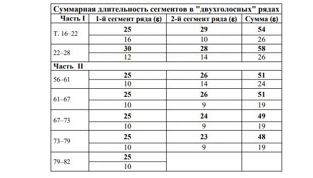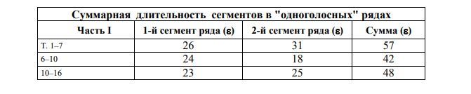 Анализ суммарных длительностей в "двухголосных" рядах приводит к следующему результату:
