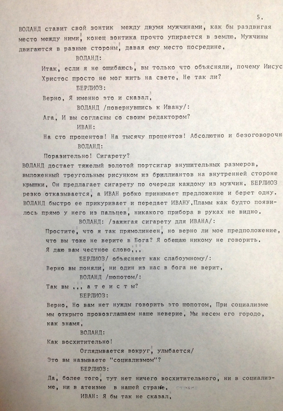 Климов Э, Климов Г. Мастер и Маргарита. Литературный сценарий фильма Э. Г. Климова // РГАЛИ. Ф. № 3095. Оп. № 1. Дело № 75. Л. 1-7.