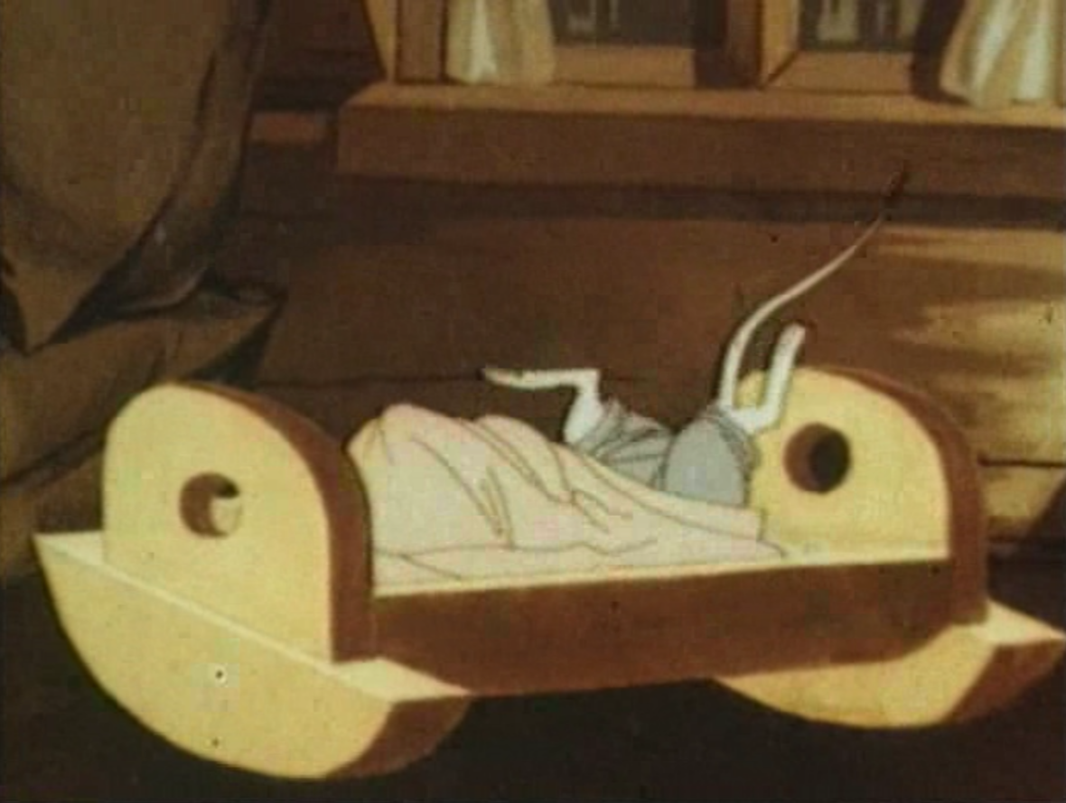 Когда мы делали «Сказку о глупом мышонке», я придумала, что мышонок, капризничая, выбрасывает все из кровати: и подушку, и одеяла. Принесла эскизы Цехановскому. Он посмотрел — явно остался доволен, сказал только: «Ты, наверное, в детстве сама такая была!»