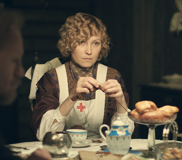 Взгляд отшельника, человека, привыкшего к полутьме, хорошо виден и в «Морфии». Балабанов запирает героя в тихую чистую светелку с чужими книгами и чужой бронзой, вырытую в снегу пещеру, нору, в которую забирается человек, скрывающийся от раздражающего свиста времени. В «Морфии» много планов из окна на равнодушную жизнь с безымянными статистами, топчущимися у колодца мужиками. Поляков глядит вокруг ослабленным от внутренней темноты зрением, при котором у людей, поневоле приблизившихся к тебе плотнее, все-таки начинаешь различать привычки и лица (особенно если эти лица оказываются на соседней подушке), но уже подальше план загроможден не столько людьми, сколько их платками и тулупами, взятыми из книг по истории костюма, а еще дальше — просто черными фигурками на снегу с белыми мизинчиками лиц. Открытые пространства Поляков всегда пересекает. Идущий по Угличу, он шагает мимо жизни с детьми и бабами, из которой он вытеснен навечно, хотя, возможно, это он стоит на месте, а город ползет мимо него, как в панораме.