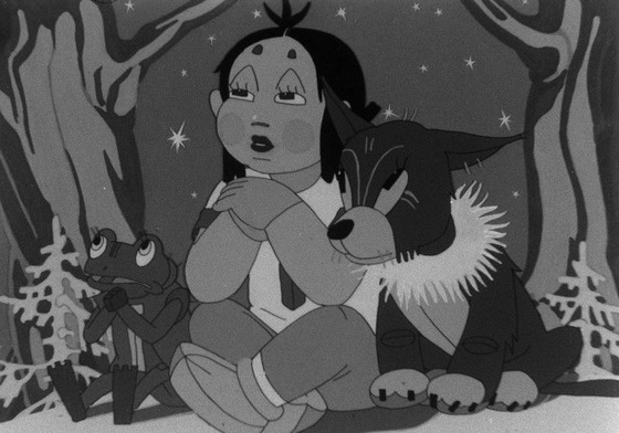 Студия вернулась в Москву. У режиссера возникает желание продолжить работу над начатым до войны фильмом «Песенка радости». Попытки разыскать сценарий и цветные эскизы не дали результатов. Пришлось заново писать сценарий, заново делать эскизы, разрабатывать типажи.