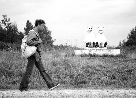 А герой хочет быть прикаянным. Вот такой вот вариант классического, положенного по жанру сюжета о том, как у «юноши, обдумывающего житье», впервые возникает ситуация выбора и как он этот выбор делает. В отличие от героев восьмидесятых-девяностых, для которых самое главное было — заявить о своем праве на «свободное хотение», Леньку это окружающее царство свободного хотения уже достало. Ему хочется работать и быть кем-нибудь «по профессии». Вот ее он и выбирает — как способ добыть жизни цель и смысл. Он и от роли винтика в системе не прочь, если это придает жизни форму, пусть даже самую механическую: завод (работа/обед) — танцы (драка/девушки) — дом (комната/мама). Он не бунтует против взрослого мира, а, наоборот, с готовностью вверяет себя мастеру-наставнику. Он вообще — странный для нашей культурной традиции подросток: его не крючит и не колбасит; он не бросает обвинений в лицо кому бы то ни было, не ерничает, не врет, не иронизирует, не занимается исследованием собственных глубин и посему не отчаивается. То есть не страдает экзистенциальной непереносимостью бытия. Он вообще не рефлексирует, он думает. И потом делает. Что-то такое долгое про себя думает, а потом берет и делает. А когда, естественно, напарывается по неопытности, то снова долго думает и делает что-то другое, пока не находит то, что ему нравится. А главное — ему доставляет истинное удовольствие, когда что-то сломанное — починено, а что-то сделанное — сделано хорошо. На фоне всеобщей энтропии и мечтательной расслабленности он единственный умножает сущности: чинит табуретку, латает дорожные дыры и уже почти начинает рыть ямы под поперечные столбы, как энтропия спохватывается, начинает сопротивляться и довольно больно бьет Леньку по морде в шесть кулаков. Пожалуй, тут можно было бы и отчаяться. Но Провидение за настойчивость посылает Леньке спасение в виде потусторонней баржи, сконструированной из старого трактора и некоторого количества металлолома, реальной и сюрреалистической одновременно, приплывшей по Большой Реке, о существовании которой мы уже почти забыли.