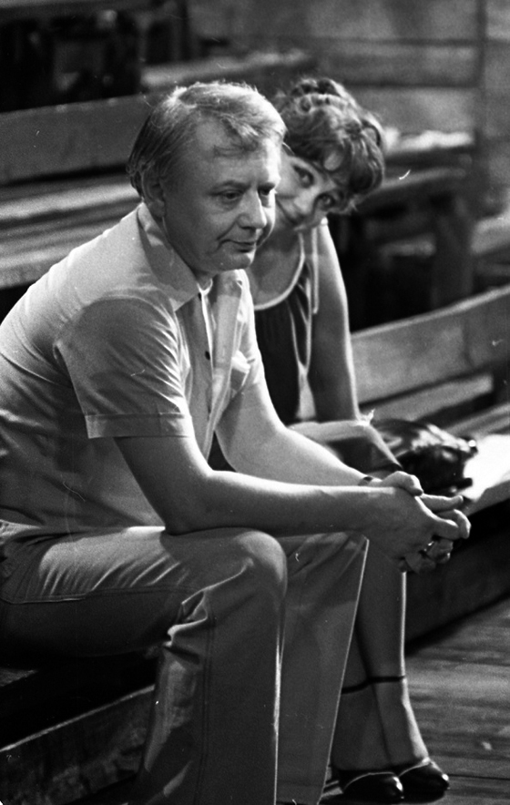 Суд души, чувство вины передо тем, что было тебе дано хорошего и что ты растерял, уступил, по той иди иной причине не осуществил, тоска от жизни, прожитой «не так», пронизывают последнюю работу Олега Табакова в «Современнике» — роль Вадика Коняева из «Восточной трибуны» А. Галина. Уставший, сохранивший деликатность, но забывший свою счастливую бескомпромиссность «розовский мальчик», этот немолодой Вадик сыгран, кажется, в былой манере — трогающе и пленительно «от себя». Но там же тоска от жизни, прожитой «не так», неожиданно сквозит в монологе чеховского персонажа «О вреде табака» — Табаков произносит его в телевизионном «шоу» по Чехову, поставленном Б. Галантером. Здесь актером схвачено все: то, что это персонаж водевиля (умение жить по законам жанра — одно из свойств Табакова); то, что это персонаж Чехова (умение уловить не только характерность роли, но и куда более тонкую «характерность автора», — еще одно его свойство). И при всем том — совершенно своя, душевная, нежданная нота. Боже мой, как этот водевильный муж-подкаблучник плачет о своей глупой жизни, как тянет его прочь отсюда, где все — не по сердцу... У Табакова это звучит так, что в какую-то минуту понимаешь не только этого смешного человечка, но и то, скажем, состояние, в котором Лев Толстой куда глаза глядят уходил ночью из Ясной Поляны...