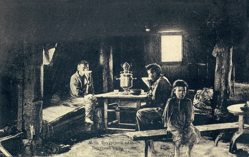 «На беду ливень не довольствовался дырами в крыше, оставшимися с прошлого года, и наделал себе новых; по всей избе лило на голову и на плечи, а под ногами на глиняном полу образовалась глубокая и все возраставшая лужа. Всевозможные нечистоты: остатки пищи, отброски рыбы и дичи, навоз телят, — втоптанные в землю и высохшие за лето, — отмокли и наполнили юрту невыносимой вонью. ‹…› В юрте царило глубокое молчание, вещь довольно необычная в месте, где находилось несколько якутов. ‹…› Я предчувствовал, что тишина эта не кончится добром, и действительно, гроза разразилась скоро. Вызвал ее работник, прозванный „Тряпкой“ за свою вялость и физическое убожество. Бродя из угла в угол с самого утра, он опрокинул наконец ведро и разлил воду. Это переполнило чашу».