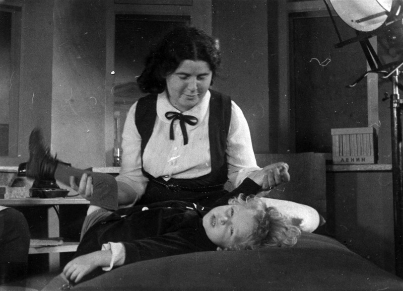Задача звука заставила обдумывать целый ряд новых положений, потому что если к этому времени я могла заставить ребенка выполнить что-либо достаточно легко, то это выполнение было связано с разговорами с ребенком. Работа на звуковой ленте ставила новую задачу, как заставить ребенка непринужденно разговаривать и говорить именно то, что нужно; как его заставить это делать без подсказок, которые совершенно невозможны — и не только потому, что тогдашнее состояние технических условий звукозаписи не позволяло делать ребенку подсказки во время съемки, но и потому, что ребенок под подсказывание работать не может, он будет в крайнем случае повторять как попугай, он будет принужден, манерен и фальшив.